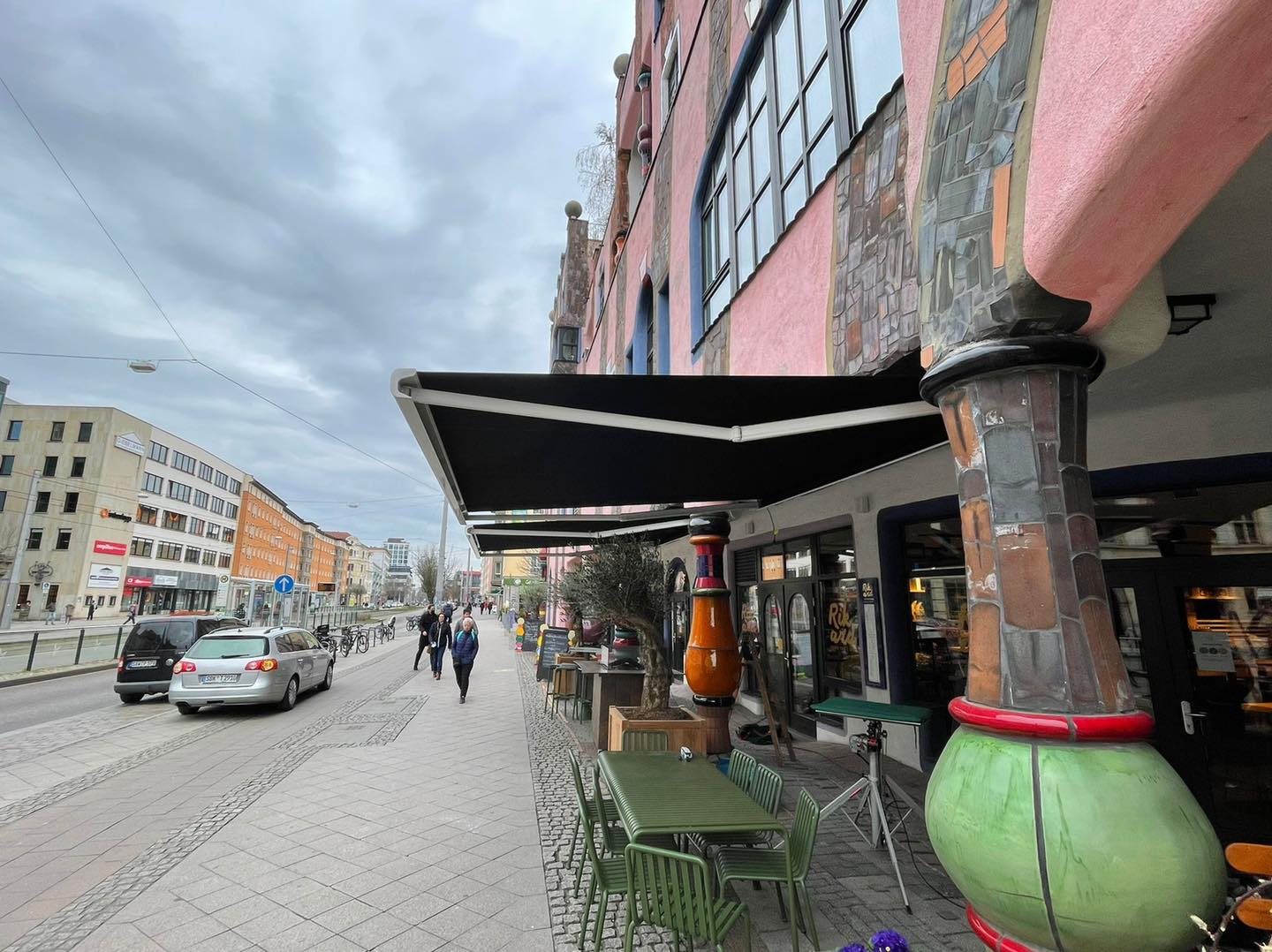 In unserer schönen Stadt am wunderbaren Hundertwasserhaus hat Team dekopol komfortablen Sonnenschutz von #klaiber montiert… Dadurch bekommt #Rikard Delikatessen schattige Plätze für die lieben Kunden…
