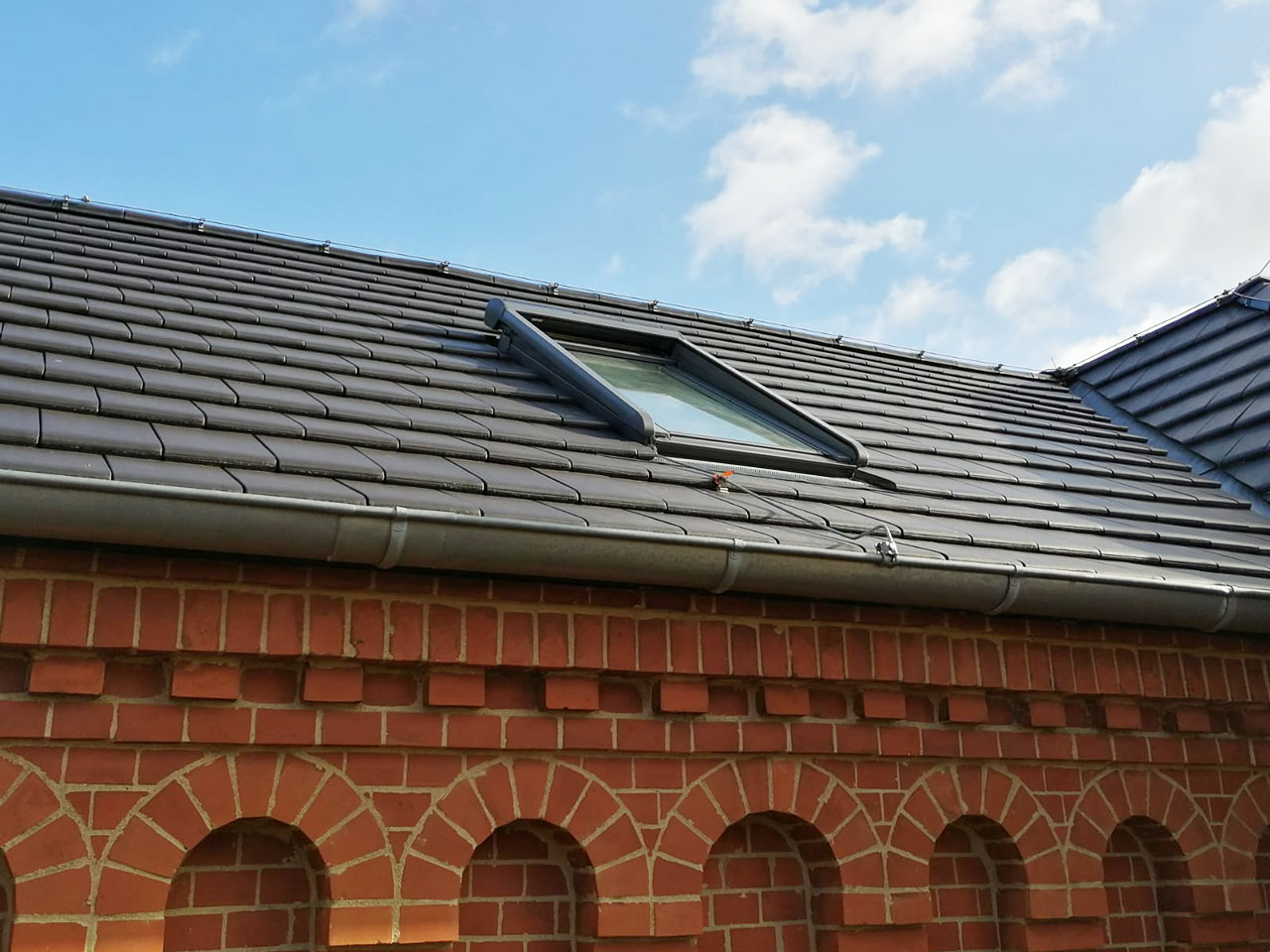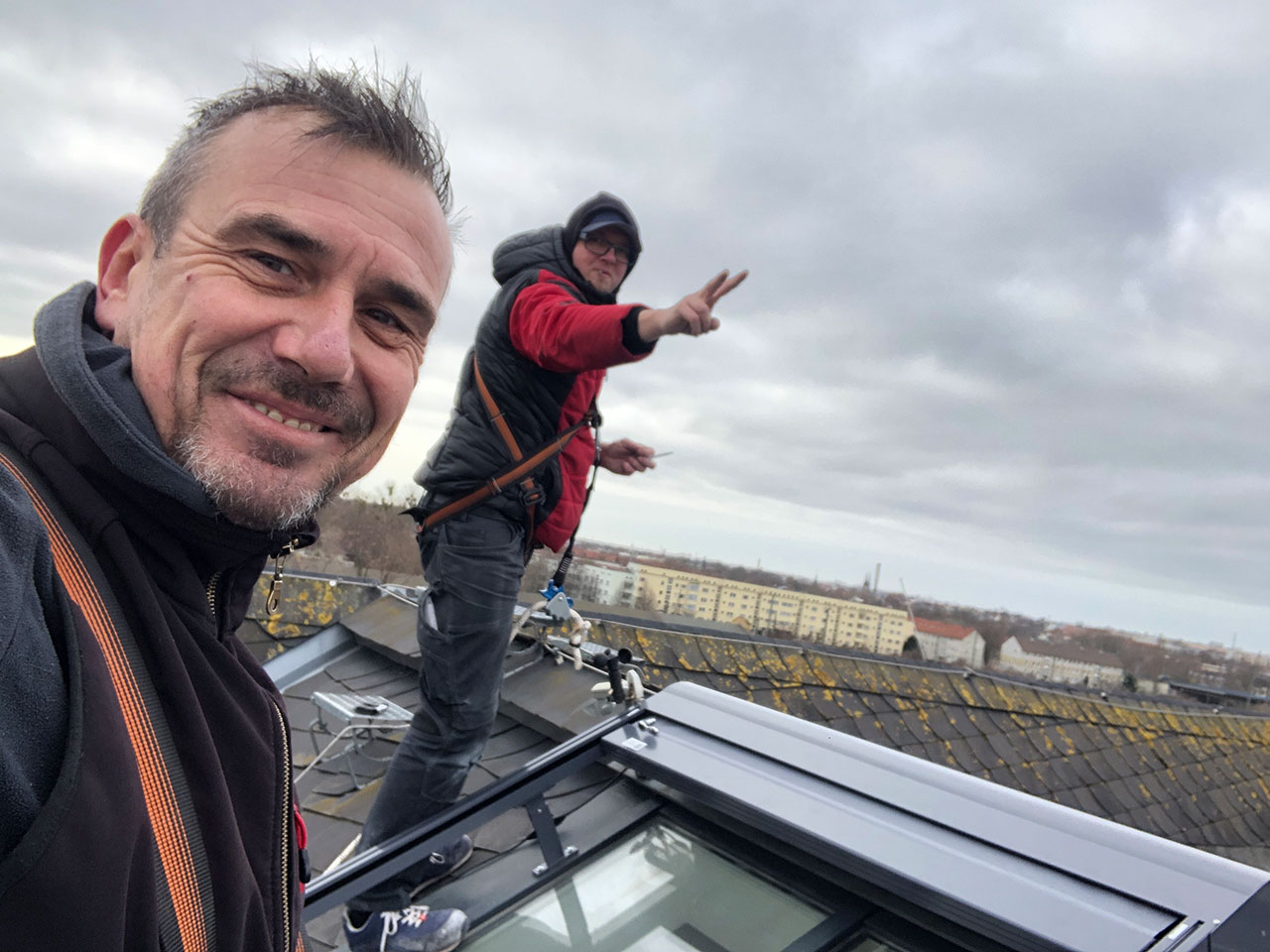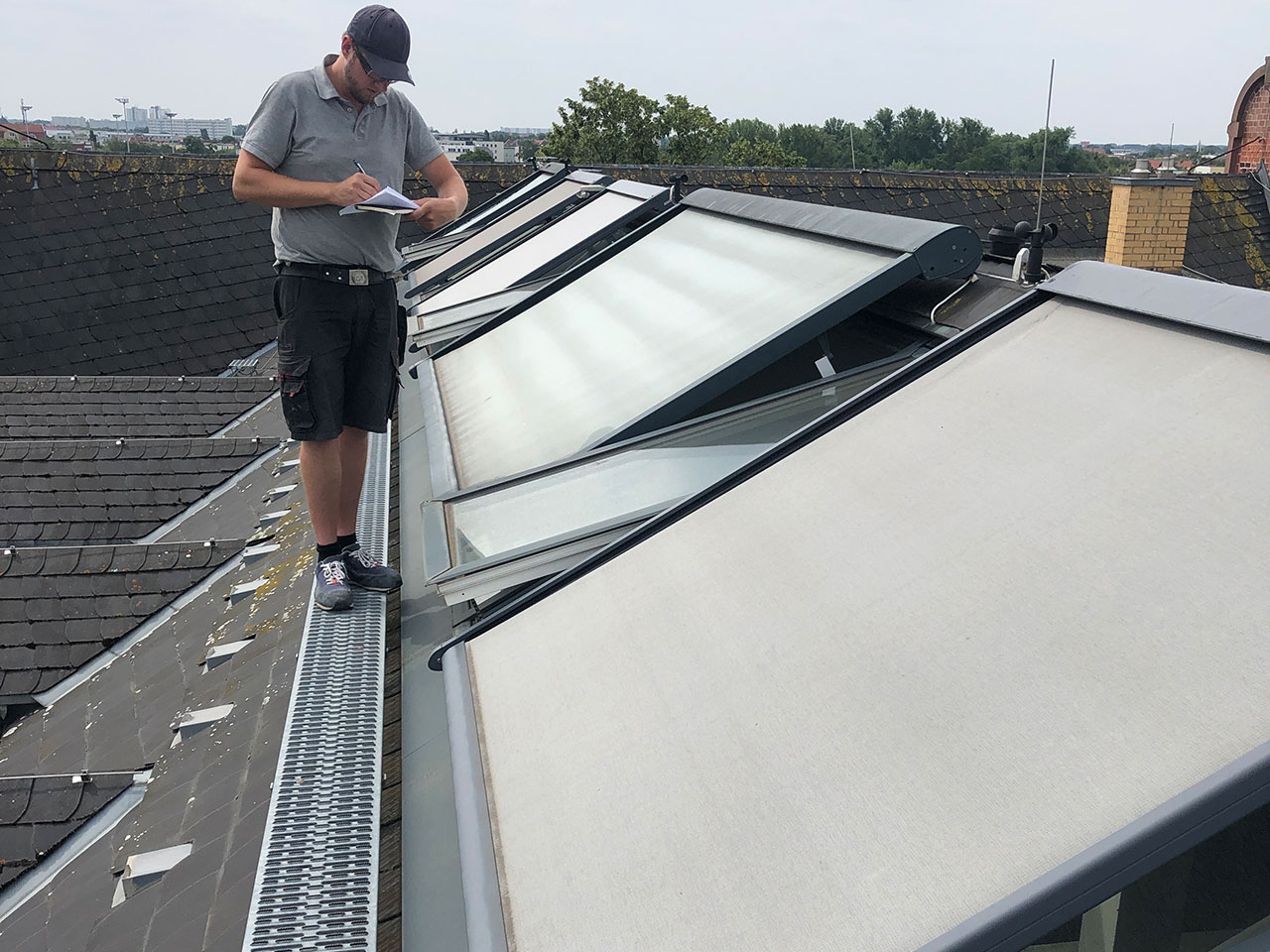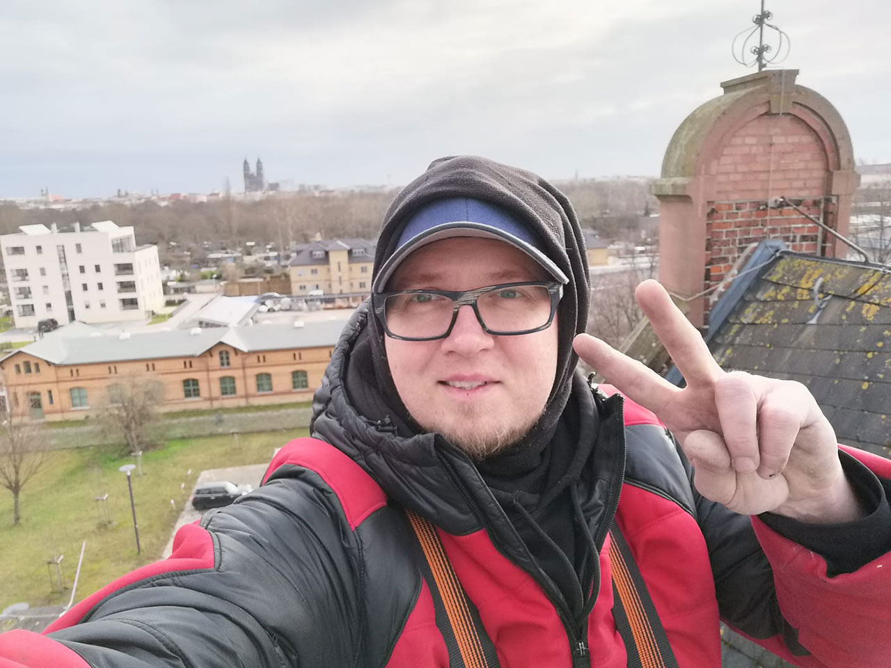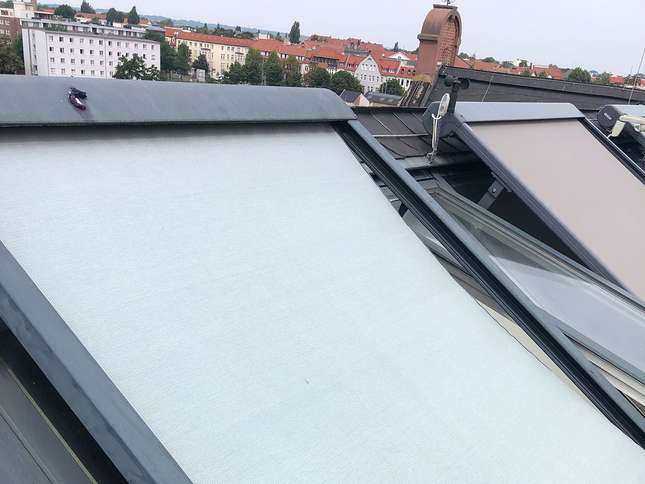 Manchmal geht es hoch hinaus! Hier montieren wir den Sonnenschutz auf dem ehemaligen Verwaltungsgebäude des Schlachthofes in Magdeburg Stadtfeld.